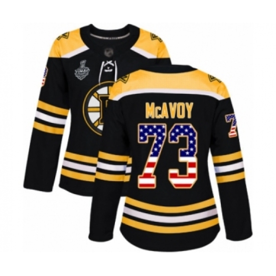 Women's Boston Bruins #73 Charlie McAvoy Authentic Black USA Flag Fashion 2019 Stanley Cup Final Bound Hockey Jersey