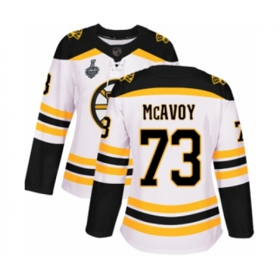 Women's Boston Bruins #73 Charlie McAvoy Authentic White Away 2019 Stanley Cup Final Bound Hockey Jersey