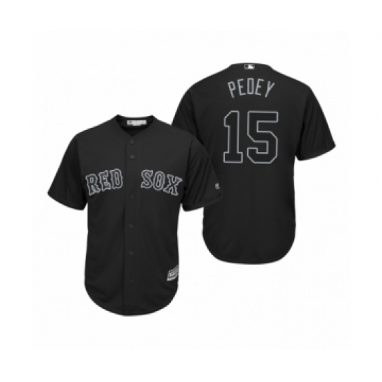 >Women's Boston Red Sox #15 Dustin Pedroia Pedey Black 2019 Players Weekend Replica Jersey