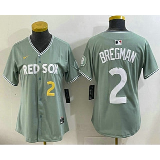 >Women's Boston Red Sox #2 Alex Bregman Light Green 2025 City Connect Player Name Limited Jersey