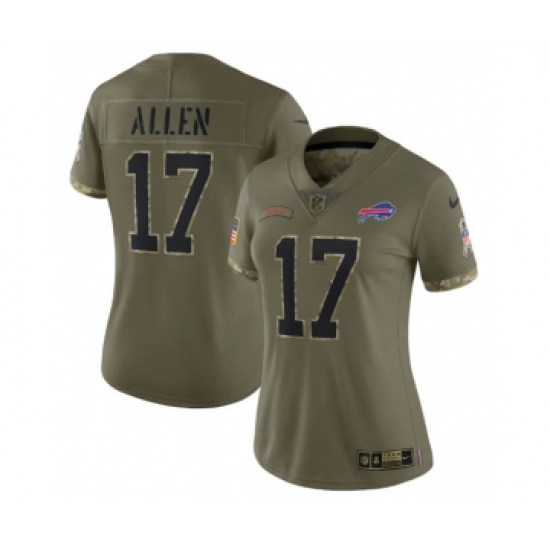 Women's Buffalo Bills #17 Josh Allen 2022 Olive Salute To Service Limited Stitched Jersey(Run Small)