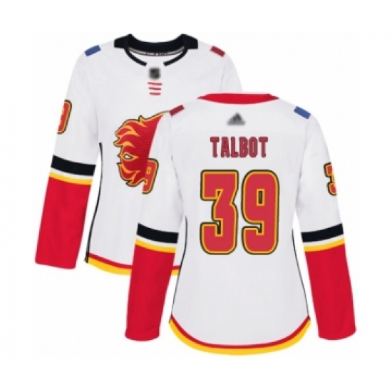 >Women's Calgary Flames #39 Cam Talbot Authentic White Away Hockey Jersey