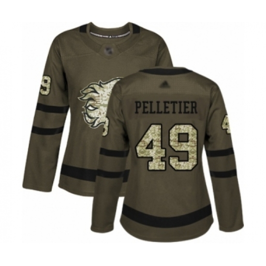 >Women's Calgary Flames #49 Jakob Pelletier Authentic Green Salute to Service Hockey Jersey