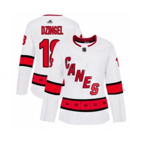 Women's Carolina Hurricanes #18 Ryan Dzingel Authentic White Away Hockey Jersey
