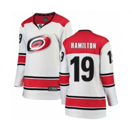 >Women's Carolina Hurricanes #19 Dougie Hamilton Authentic White Away Fanatics Branded Breakaway NHL Jersey
