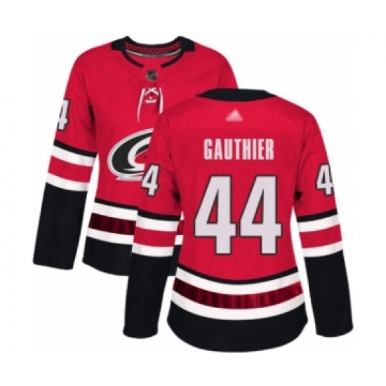 >Women's Carolina Hurricanes #44 Julien Gauthier Authentic Red Home Hockey Jersey
