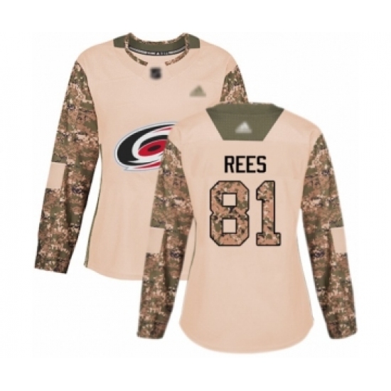 Women's Carolina Hurricanes #81 Jamieson Rees Authentic Camo Veterans Day Practice Hockey Jersey