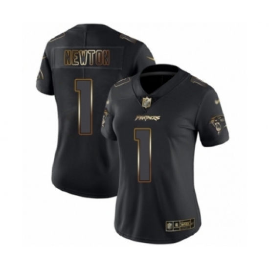 Women's Carolina Panthers #1 Cam Newton Black Gold Vapor Untouchable Limited Football Jersey