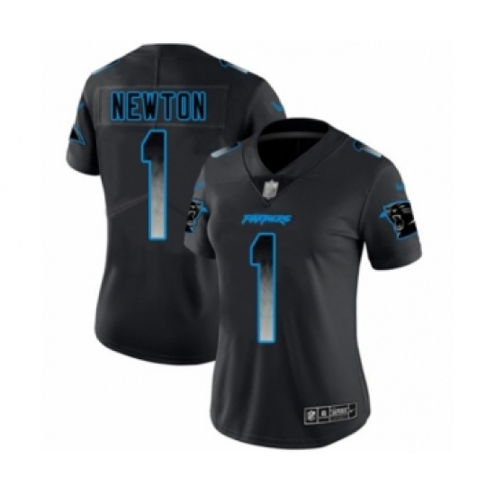 Women's Carolina Panthers #1 Cam Newton Limited Black Smoke Fashion Football Jersey