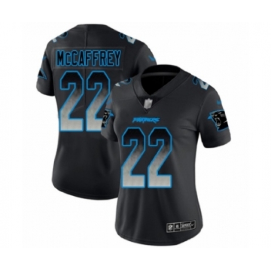 Women's Carolina Panthers #22 Christian McCaffrey Limited Black Smoke Fashion Football Jersey