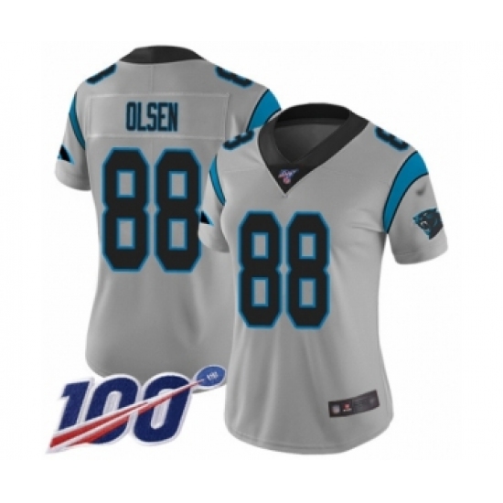 Women's Carolina Panthers #88 Greg Olsen Silver Inverted Legend Limited 100th Season Football Jersey