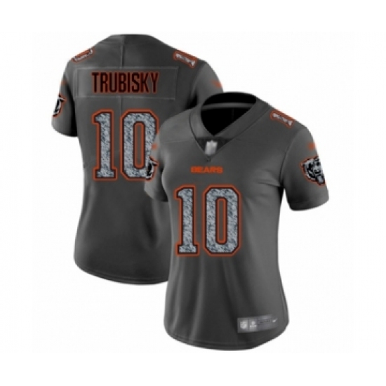 >Women's Chicago Bears #10 Mitchell Trubisky Limited Gray Static Fashion Football Jersey