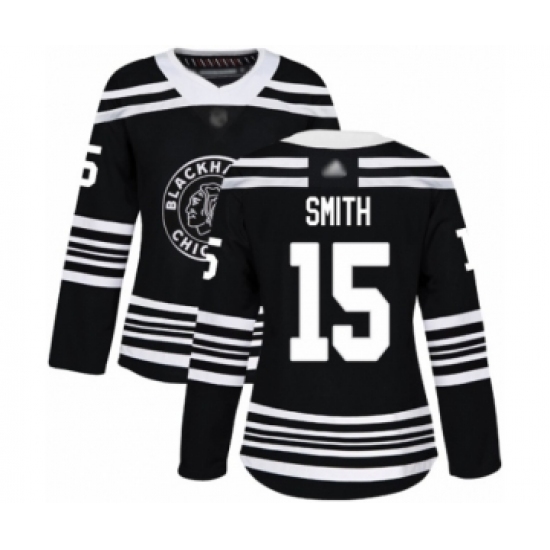 >Women's Chicago Blackhawks #15 Zack Smith Authentic Black Alternate Hockey Jersey