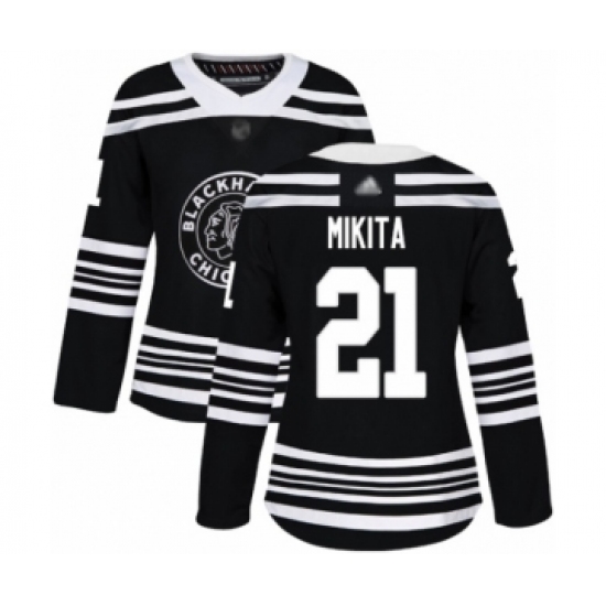 Women's Chicago Blackhawks #21 Stan Mikita Authentic Black Alternate Hockey Jersey