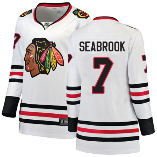 Home>NHL>Chicago Blackhawks>Brent Seabrook>Women's Chicago Blackhawks #7 Brent Seabrook Authentic White Away Fanatics Branded Breakaway NHL Jersey