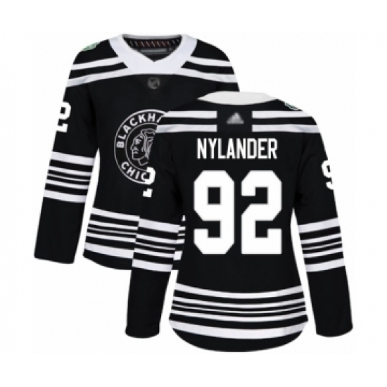 >Women's Chicago Blackhawks #92 Alexander Nylander Authentic Black 2019 Winter Classic Hockey Jersey
