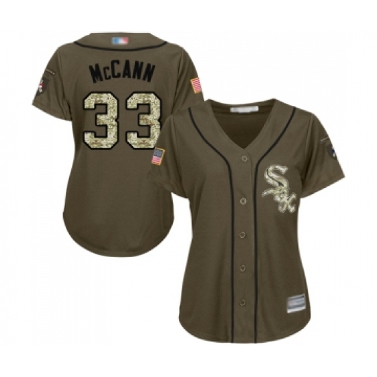 >Women's Chicago White Sox #33 James McCann Authentic Green Salute to Service Baseball Jersey
