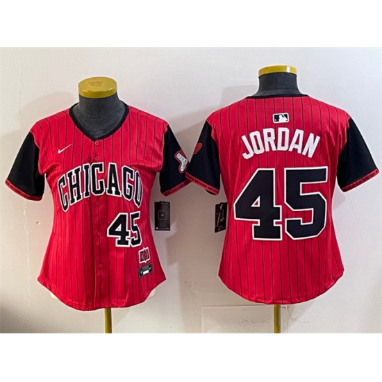 >Women's Chicago White Sox #45 Michael Jordan Red Black 2025 City Connect Limited Stitched Baseball Jersey(Run Small)