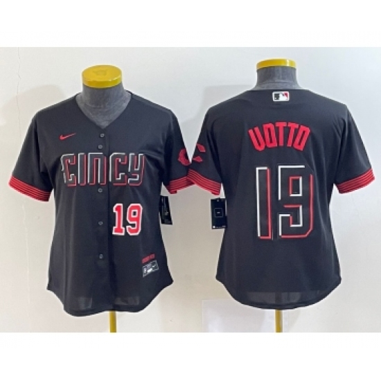 >Women's Cincinnati Reds #19 Joey Votto Number Black 2023 City Connect Cool Base Stitched Jersey2