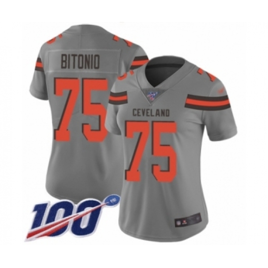 >Women's Cleveland Browns #75 Joel Bitonio Limited Gray Inverted Legend 100th Season Football Jersey