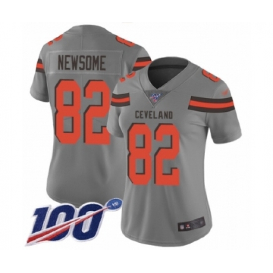 >Women's Cleveland Browns #82 Ozzie Newsome Limited Gray Inverted Legend 100th Season Football Jersey