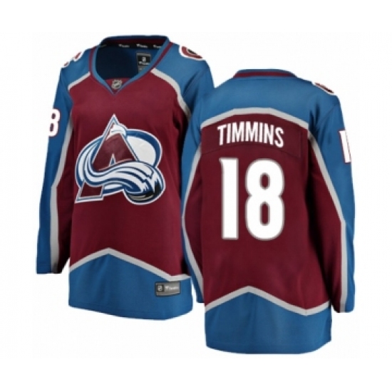 >Women's Colorado Avalanche #18 Conor Timmins Authentic Maroon Home Fanatics Branded Breakaway NHL Jersey