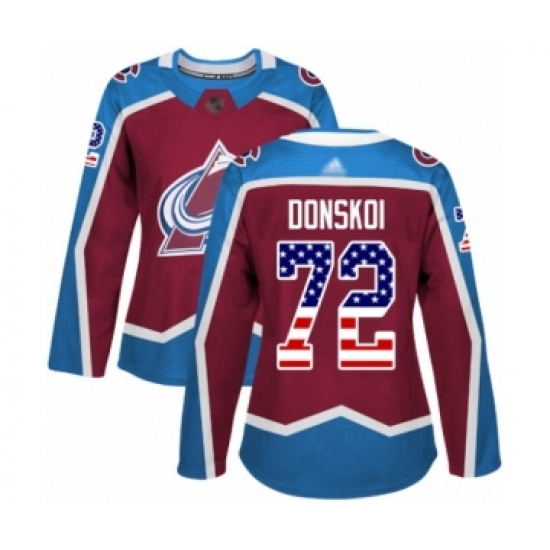 Women's Colorado Avalanche #72 Joonas Donskoi Authentic Burgundy Red USA Flag Fashion Hockey Jersey