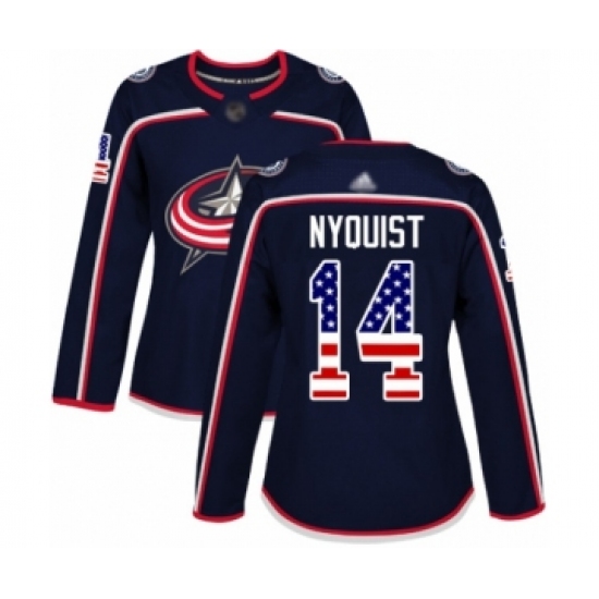 Women's Columbus Blue Jackets #14 Gustav Nyquist Authentic Navy Blue USA Flag Fashion Hockey Jersey