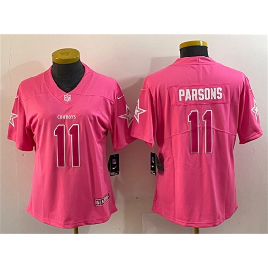 >Women's Dallas Cowboys #11 Micah Parsons Pink Vapor Untouchable Limited Stitched Jersey