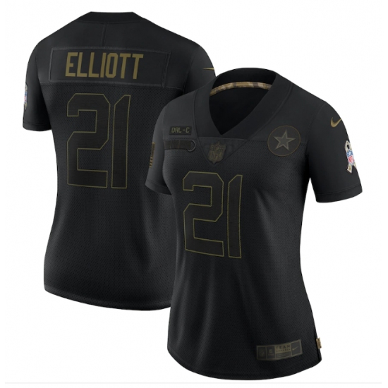 >Women's Dallas Cowboys #21 Ezekiel Elliott Black 2020 Salute To Service Limited Jersey