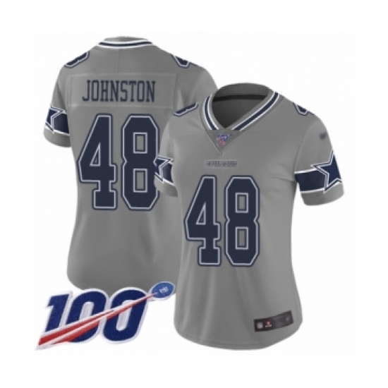 Women's Dallas Cowboys #48 Daryl Johnston Limited Gray Inverted Legend 100th Season Football Jersey