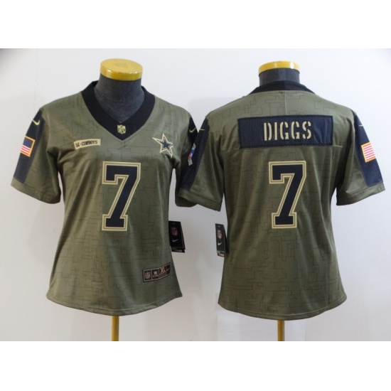 >Women's Dallas Cowboys #7 Trevon Diggs Nike Olive 2021 Salute To Service Limited Player Jersey