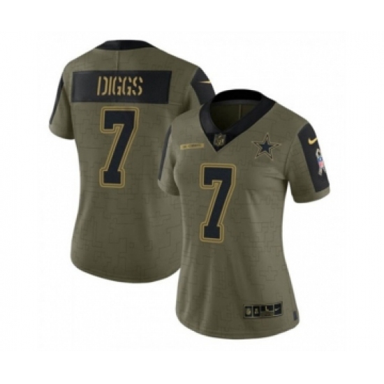 >Women's Dallas Cowboys #7 Trevon Diggs Olive Salute To Service Limited Stitched Jersey(Run Small)