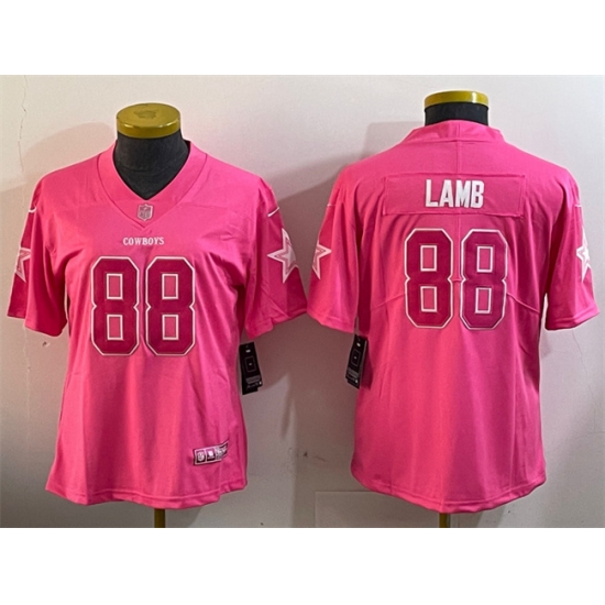 Women's Dallas Cowboys #88 CeeDee Lamb Pink Stitched Limited Rush Fashion Jersey