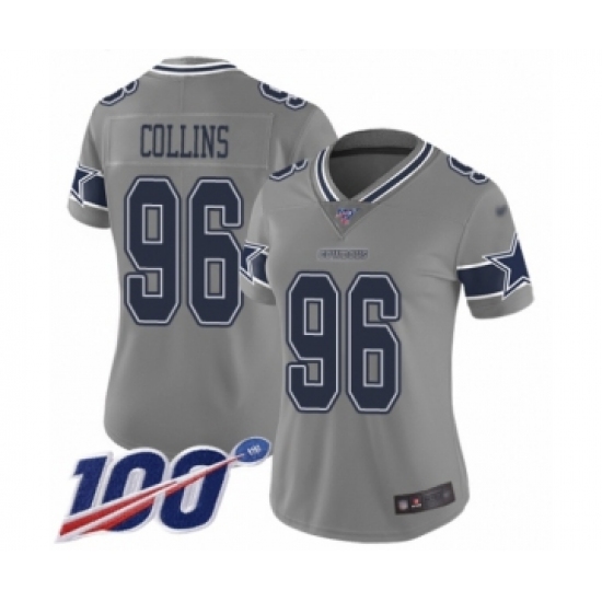 >Women's Dallas Cowboys #96 Maliek Collins Limited Gray Inverted Legend 100th Season Football Jersey