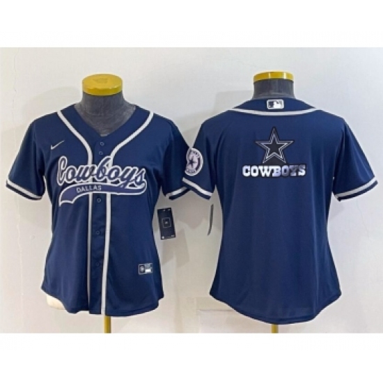 >Women's Dallas Cowboys Navy Blue Team Big Logo With Patch Cool Base Stitched Baseball Jersey