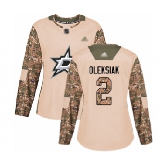 >Women's Dallas Stars #2 Jamie Oleksiak Authentic Camo Veterans Day Practice Hockey Jersey
