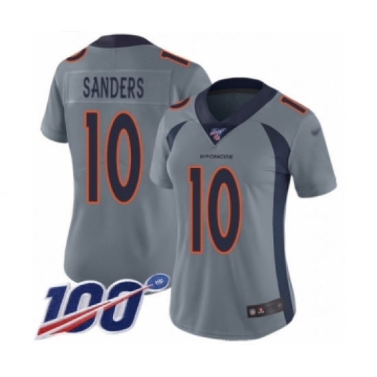 >Women's Denver Broncos #10 Emmanuel Sanders Limited Silver Inverted Legend 100th Season Football Jersey