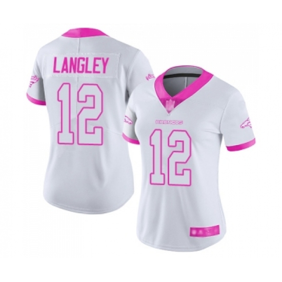 Women's Denver Broncos #12 Brendan Langley Limited White Pink Rush Fashion Football Jersey