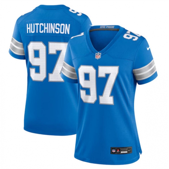 Women's Detroit Lions #97 Aidan Hutchinson Blue Stitched Jersey(Run Smaller)