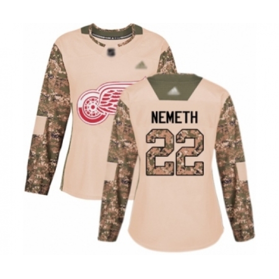 >Women's Detroit Red Wings #22 Patrik Nemeth Authentic Camo Veterans Day Practice Hockey Jersey