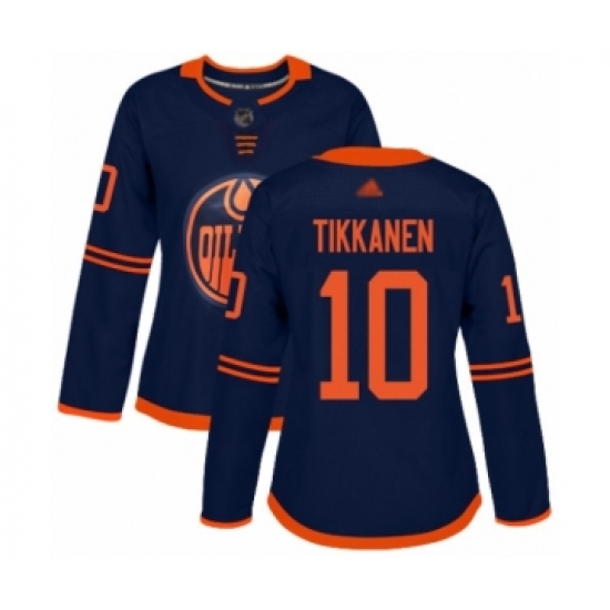 >Women's Edmonton Oilers #10 Esa Tikkanen Authentic Navy Blue Alternate Hockey Jersey