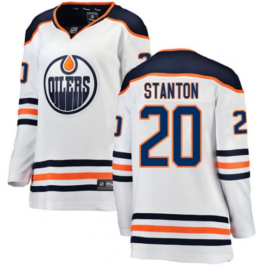 Home>NHL>Edmonton Oilers>Ryan Stanton>Women's Edmonton Oilers #20 Ryan Stanton Authentic White Away Fanatics Branded Breakaway NHL Jersey