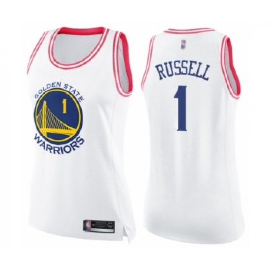 >Women's Golden State Warriors #1 D'Angelo Russell Swingman White Pink Fashion Basketball Jersey