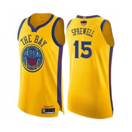 Youth Golden State Warriors #15 Latrell Sprewell Swingman Gold 2019 Basketball Finals Bound Basketball Jersey - City Edition