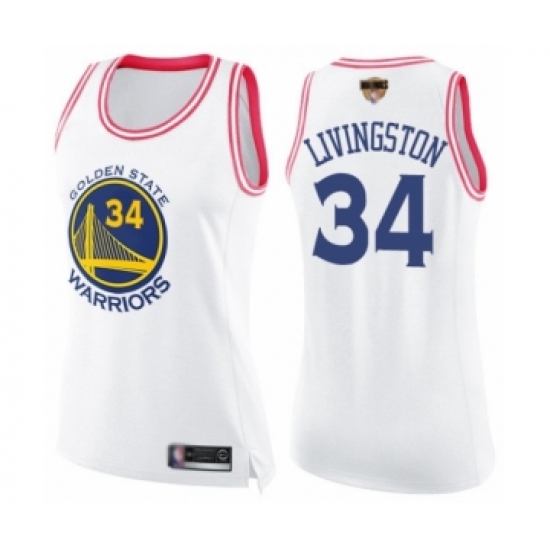 >Women's Golden State Warriors #34 Shaun Livingston Swingman White Pink Fashion 2019 Basketball Finals Bound Basketball Jersey