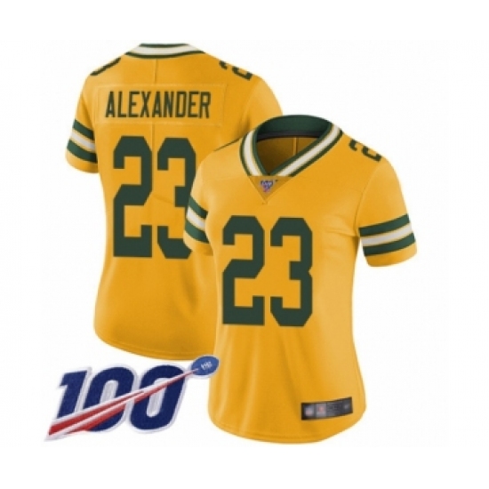 >Women's Green Bay Packers #23 Jaire Alexander Limited Gold Rush Vapor Untouchable 100th Season Football Jersey