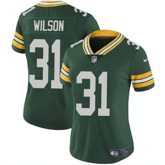>Women's Green Bay Packers #31 Emanuel Wilson Green Vapor Untouchable Limited Football Stitched Jersey(Run Small)