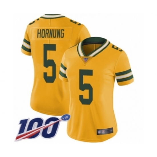 >Women's Green Bay Packers #5 Paul Hornung Limited Gold Rush Vapor Untouchable 100th Season Football Jersey