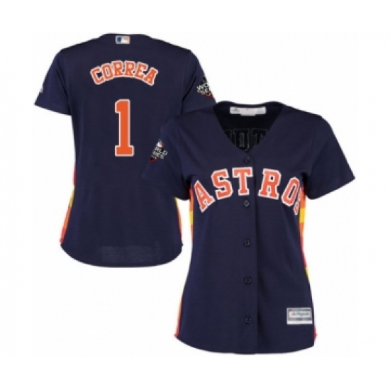 Women's Houston Astros #1 Carlos Correa Authentic Navy Blue Alternate Cool Base 2019 World Series Bound Baseball Jersey